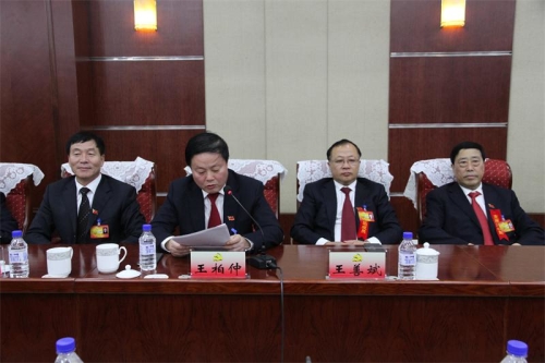 区委书记王柏仲,区委副书记、代区长王善斌等区领导参加区第九次党代会主席团第四次会议现场。