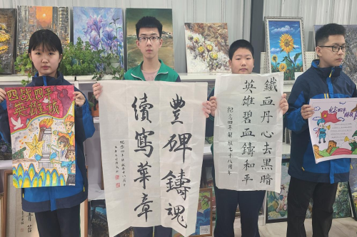举办纪念四平解放78周年主题书画展,征集书法、绘画等作品,同学们以笔墨抒怀、以丹青寄情,致敬革命先烈,描绘家乡美景与时代新貌,展现新时代初中生的艺术素养与家国情怀。
