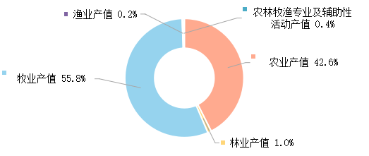 全年铁西区农林牧渔业总产值按可比价格计算比上年增长2.1%。其中,农业产值比上年增长2.5%;林业产值比上年增长12.9%;牧业产值比上年增长5.9%;渔业产值比上年增长138.1%;农林牧业专业辅助性活动产值增长4.8%。