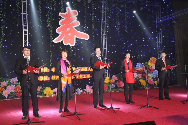 团拜会上,区四个班子领导集体给全区广大干部群众拜年,共同向全区各届群众表达新春问候和良好祝愿。不忘初心、牢记使命、担当作为、加快发展,演出前,区委书记王柏仲,区长王善斌,共同表演的诗朗诵《牢记使命担当》,表达了区委、区政府精诚团结、同心协力,坚持“五区”建设发展思路,打造“五个铁西”发展目标,加快构建“四区两带”产业布局的坚定信心和决心。